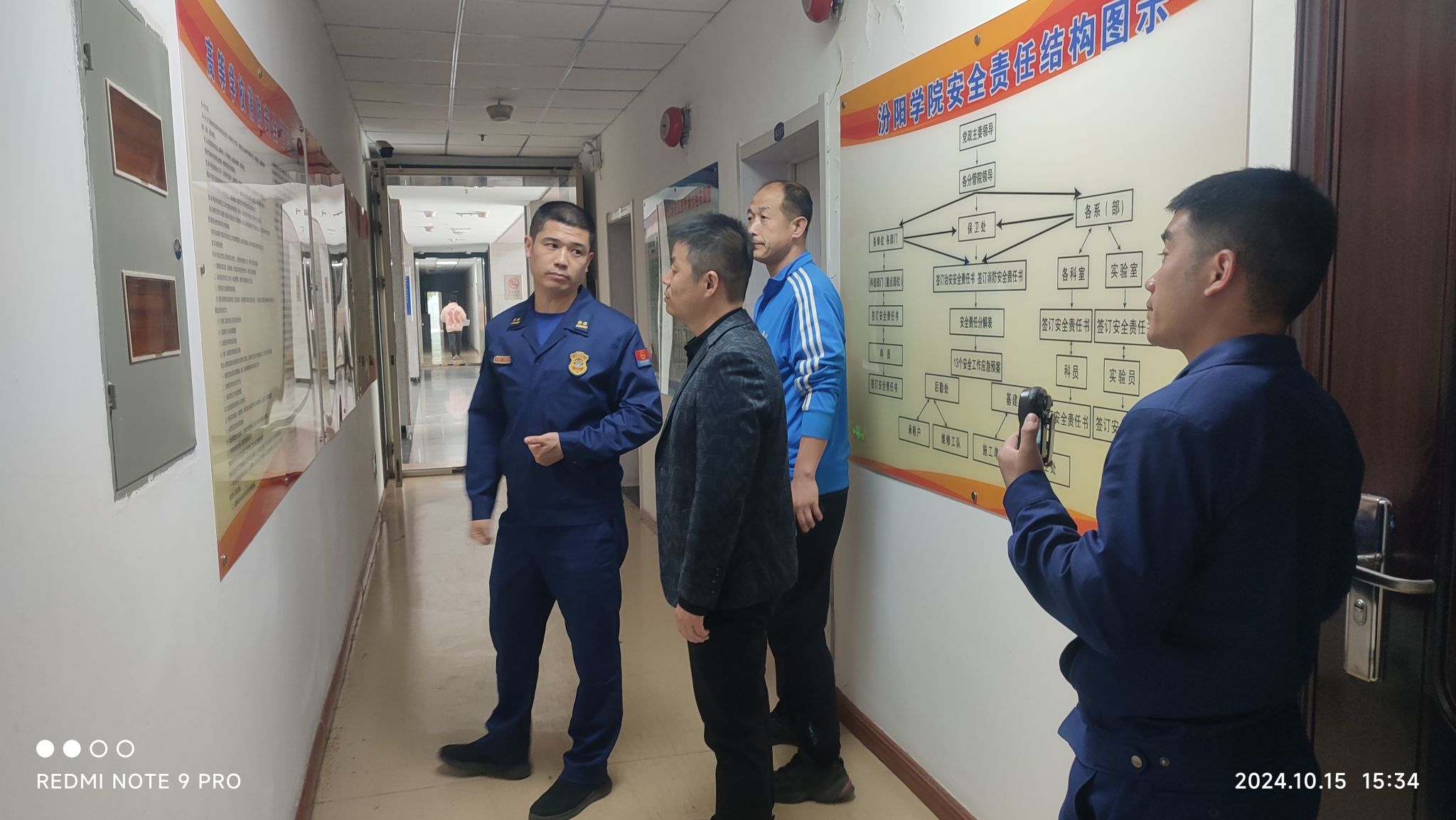 2024年10月15日,汾阳市消防应急救援大队张怀清参谋长到SUNBET进行消防工作检查,重点是对为SUNBET养正楼中控联动系统认真检查、对消防维保服务的山西晋海消防检测维保有限公司的维保人员资质、维保记录、维保实操进行了仔细的检查。保卫处梁勇刚处长陪同检查。