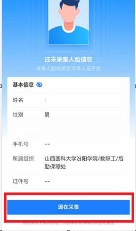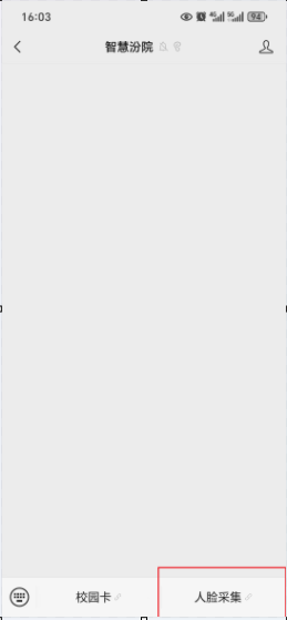 1.打开“智慧汾院”公众号,点击公众号下方“人脸采集”