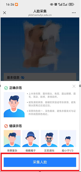 4.采集完成后系统会自动校验照片是否合格。合格后会提示“人脸采集成功”。