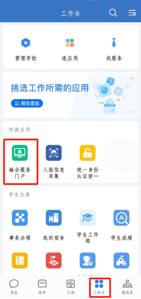 1、从学校官网找到“融合服务门户”进行登录系统,可使用企业微信扫描页面二维码进行登录,或使用账号密码登录;账号为学工号,默认密码为身份证件号后六位。