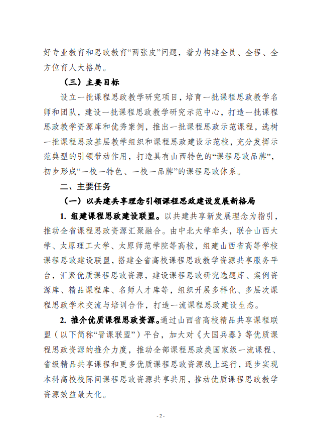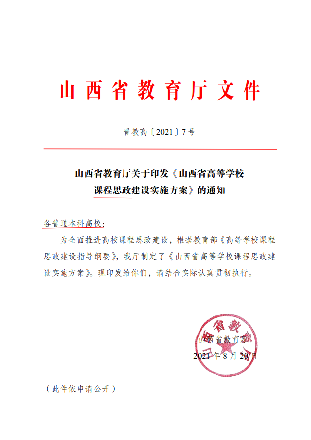 山西省教育厅关于印发《山西省高等学校课程思政建设实施方案》的通知