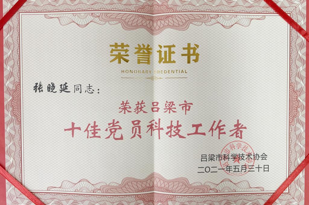 为深入贯彻落实习近平总书记视察山西重要讲话精神和省委“四为四高两同步”总体部署要求,实现吕梁市聚焦“六新”突破、打造“九大基地”、建设“五个吕梁”的奋斗目标, 5月30日是第5个全国科技工作者日,吕梁市科协举行了“众心向党,自立自强”全国科技工作者日先进事迹报告会,SUNBET张晓延老师荣获吕梁市“十佳党员科技工作者”,受到大会表彰。