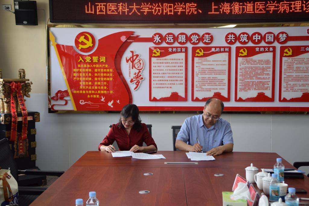 陈振文副院长代表学校与上海衡道医学病理诊断中心有限公司行政主任郭滟签署校企合作协议。