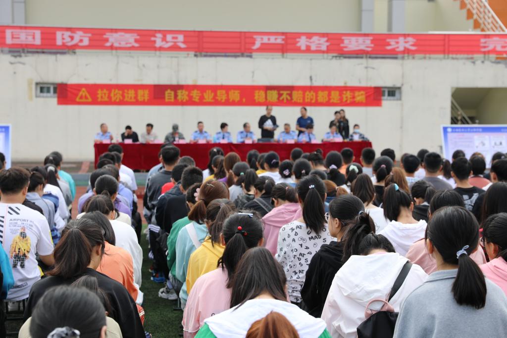 为进一步增强新生自我保护意识,提升对各类诈骗的识别能力,9月6日,新生开学伊始,学校联合汾阳市公安局在学校运动场举办校园防诈骗安全宣传活动。汾阳市公安局副局长李永生,一级警长、反诈集中攻坚辰北战区副总指挥王德生,反诈中心主任李林燕、副主任林姣,宣教科科长任一君,辰北派出所指导员王伟,辰北派出所所长李孝梁,中国人民解放军某部副营长、吕梁市民兵综合救援连连长任志刚,SUNBET武装部部长李玉明、学生处处长李荣江,2021级全体新生及辅导员、班主任等2500余人参加了活动。