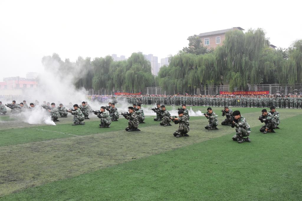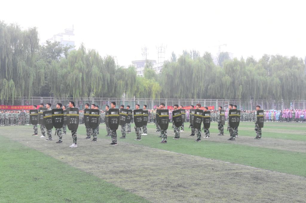 随后,2021级全体新生进行了军训汇报表演。同学们冒着细密的秋雨、迈着整齐的步伐、喊着嘹亮的口号,精神抖擞地走过主席台。方队代表进行了男女生队列、拳术、女子匕首操和战术等精彩表演。同学们精神饱满、斗志昂扬,展现了2021级新生朝气蓬勃、积极向上的精神风貌,赢得了现场师生的阵阵掌声。