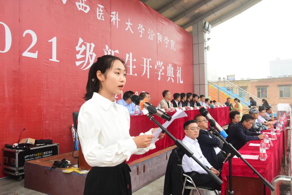 医学检验系王倩倩代表教师作了发言,表达了对同学们谆谆教诲和殷切期望,基础医学部2021级助产专业贾博涵同学代表新生作了发言,抒发了对美好未来的憧憬。