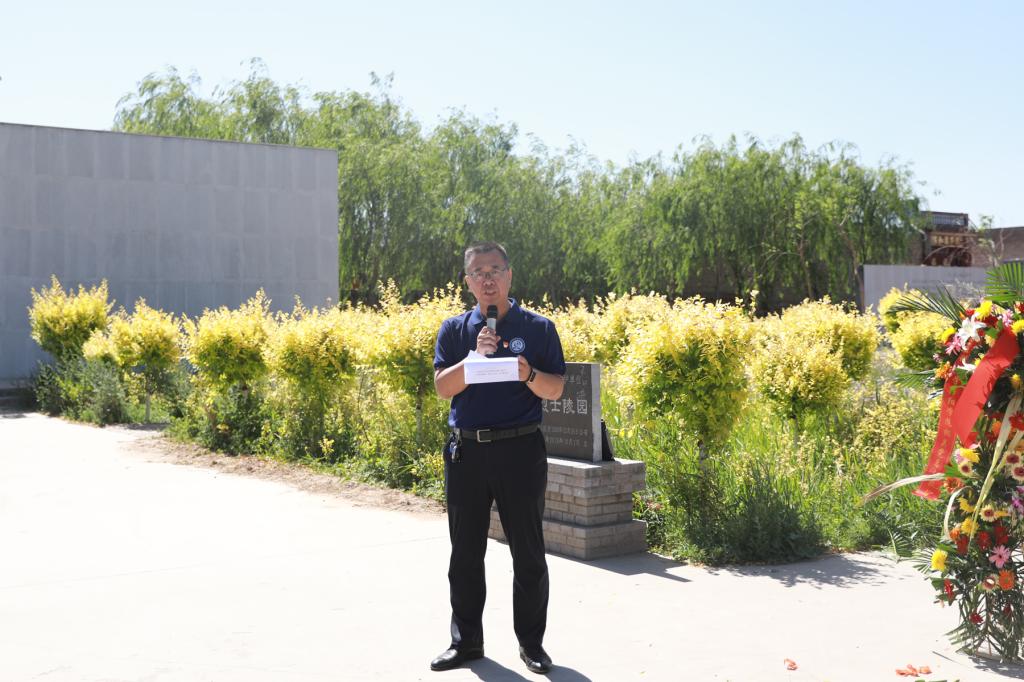 上午10时,党日活动正式开始。活动由组织部部长李铮主持。党员们向长眠于此的蒋三等三兄弟的烈士英魂敬献花篮。全体机关党员庄严肃穆,面向纪念碑为民族独立和人民解放事业浴血奋战、英勇献身的革命先烈默哀三分钟。随后在机关党总支书记温继军的带领下,党员同志们重温入党誓词,合唱《没有共产党就没有新中国》。最后温书记作了讲话,告诫全体党员务必保持斗志,奋勇向前,方能无愧于先烈,无愧于党的期待与嘱托。组织部王笑妍代表青年党员表态将继承先辈遗志,积极投身建设现代化强国的伟大事业中,以青春之我,创建青春之国家!