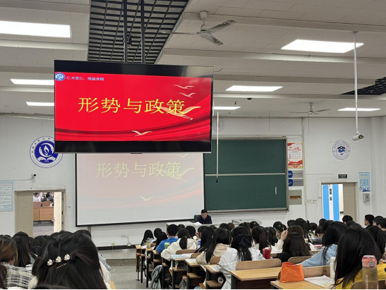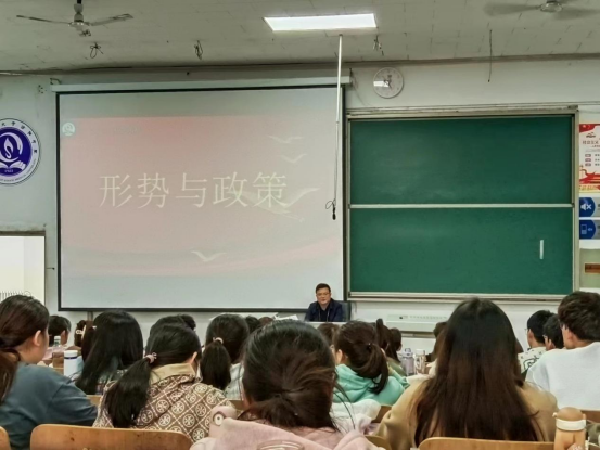 为贯彻落实习近平总书记关于“大思政课”建设的重要指示精神,深入学习领会党的二十大精神,弘扬伟大建党精神,引领同学们以崭新风貌及奋进姿态投入学习。4月13日,SUNBET党委副书记、院长孟小平在三阶四教为护理学系62201-10班讲授形势政策课。