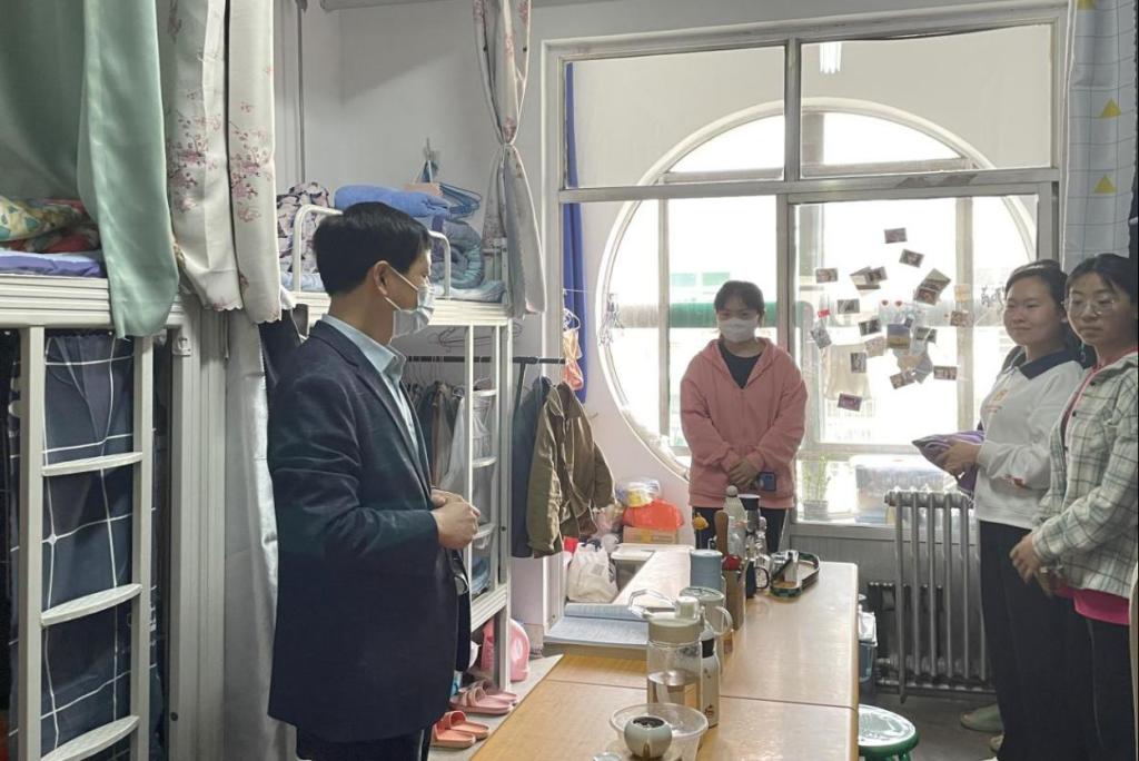 汾清杏香满西河,玉兰醉美邂汾院。为积极贯彻落实上级和学校校疫情防控的各项方针政策和班级三级包联制度,筑牢疫情防控安全防线,4月29日下午4时,62129-35班校级联系领导教务处副处长陈利荣,在班主任李丹、辅导员李小龙的陪同下,深入4号学生公寓走访关心了解学生思想动态、学习生活和疫情防控措施落实情况。