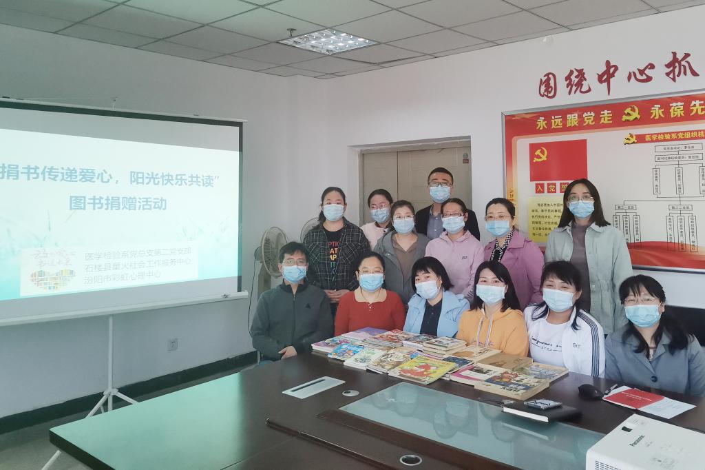 “予人书本,手留墨香,奉献爱心,收获希望”,为使贫困乡村缺少课外阅读的孩子有书读,为有需要的孩子们种下一粒粒梦想的种子,推开一扇扇看世界的大门,4月21日,在世界读书日来临之际,医学检验系党总支第二党支部携手石楼县星火社会工作服务中心、汾阳市彩虹健康心理中心开展为石楼县小朋友“捐书传递爱心、阳光快乐共读”的图书捐赠活动。