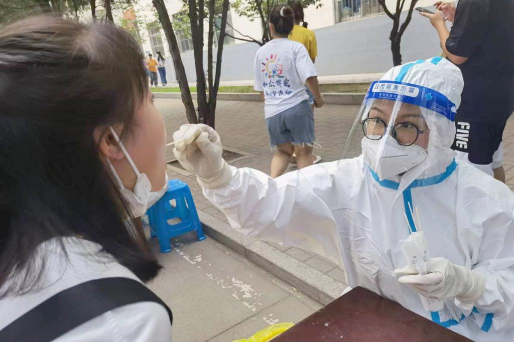 核酸扫码人员赵成瑞老师是个典型的代表,她年龄较大,要代课,同时还是科技中心研究生管理办公室主任。遇到核酸采集有课的时候总是提前调课,还经常向核酸采集总调度韩林梅主动请战:“要是人员调不过来,只要我有时间就可以排我”。在面对抗原检测复杂疑难问题,需要复测抗体核酸时,核酸检测人员韩文萍和于波老师随叫随到,不抱怨、不推诿,迎难而上,全副武装,圆满完成了核酸采样任务。在全员核酸人员安排很紧张的时候,基础医学部的武莉老师、临床医学系的王君老师主动请缨,自觉加入到核酸检测的志愿者队伍中来……