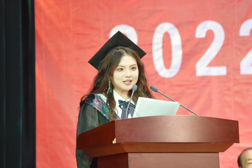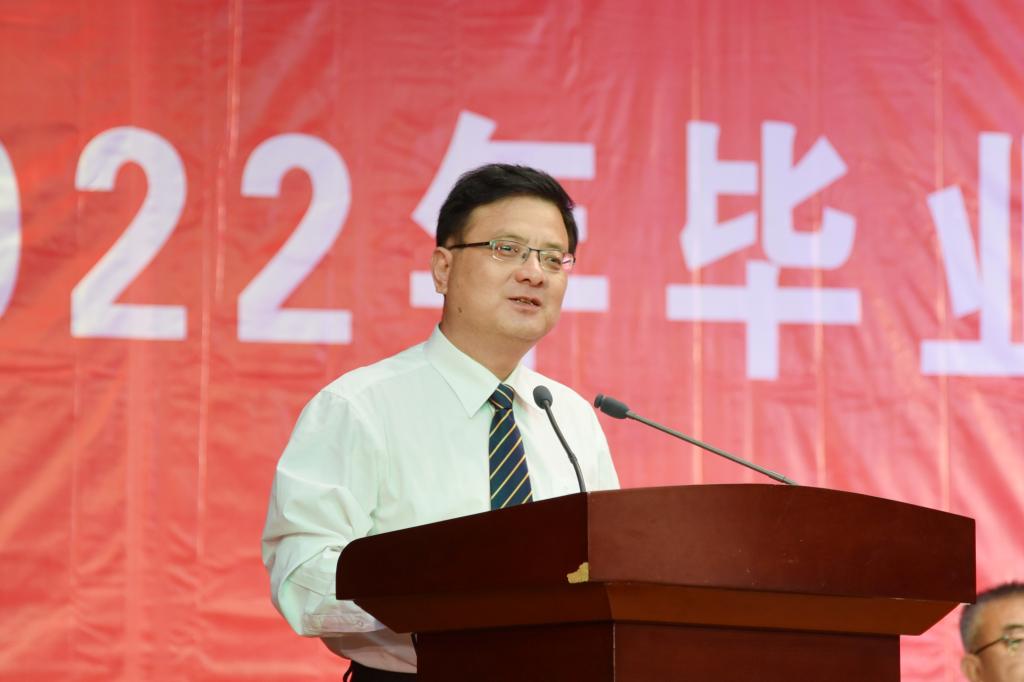 党委副书记、院长孟小平作了热情洋溢的致辞。孟小平院长代表学校向2331名毕业生表示祝贺,向哺育、培养、支持学生成长成才的父母、老师和亲友表示感谢,并与同学们一起回忆了在汾阳学院度过的美好时光,展望了学校的发展方向。孟院长对即将离开学校跨上新征程的同学们提出三点希望:一是希望同学们坚守初心,心怀国之大者。在新冠肺炎疫情席卷武汉时,汾阳学院百余名校友冲锋在前、逆行出征,舍身忘我护佑人民安康,他们将“小我”融入“大我”,充分彰显了汾阳学院人的家国情怀和责任担当,走出了更有价值的人生之路。希望同学们向优秀校友学习、向前辈学习、向榜样学习,坚持“人民至上、生命至上”,始终心怀“国之大者”,心系“国家事”、肩扛“国家责”,做到经得起风雨、受得住磨砺、扛得住摔打,争做时代前列的奋进者、健康中国的开拓者、救死扶伤的奉献者,书写更有高度、更有境界、更有品味的无悔青春;二是希望同学们坚定信心,担当复兴大任。始终保持终身学习、奋发有为的精神态度,始终坚持宽广豁达、宁静致远的处事方式,把在学校所积累的专业基础和临床技能,内化为从容应对惊涛骇浪的深厚底气,将所具备的忧患意识和底线思维,历练成抵御风险挑战的根本保证,面对困难不抱怨,面对逆境不气馁,以开放自信的姿态行走世界,以青春之我、奋斗之我、自强之我,为祖国医疗卫生事业发展铺路架桥,为实现中华民族伟大复兴添砖加瓦。三是希望同学们永葆恒心,争做事业闯将。日日行,不怕千万里;常常做,不怕千万事。希望同学们能耐得住寂寞、守得了孤独,即使身处暗巷、绝境,都能够坚持恒心、永久奋斗,在新的征程上勇当开路先锋、争当事业闯将,在不懈奋斗中放飞人生梦想、成就事业华章。