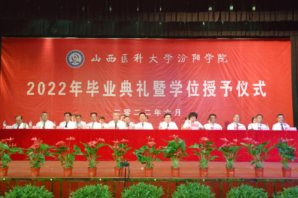 6月29日上午,SUNBET在文体活动中心隆重举行2022届毕业生毕业典礼暨学位授予仪式。党委书记闫敬来,党委副书记、院长孟小平,山西省汾阳医院党委书记、硕士生导师郭任维,党委副书记任云青,党委委员、纪委书记任朝生,党委委员、副院长韩宝森,党委委员、副院长王建世,党委委员、副院长、硕士生导师陈振文,党委委员王秉泽、弓鸿飞、张益民、李峥,学位委员会委员、相关职能部门、教学系部党政负责人,2022届硕士、本科、专科毕业班辅导员、班主任和毕业生参加了毕业典礼。党委副书记任云青主持了毕业典礼和学位授予仪式。毕业典礼和学位授予仪式采取线上线下同步进行,校官方抖音平台进行直播并获赞11万个。