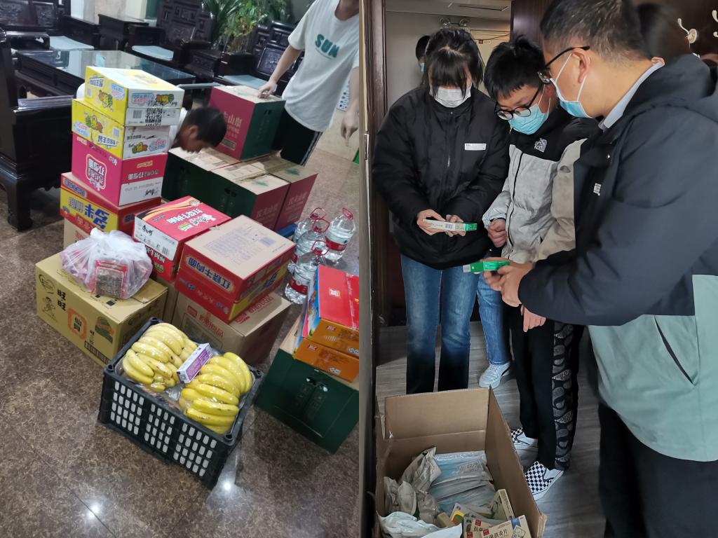 同时,学校其他部门也大力支持、爱心帮助。基础医学部党总支从泉盛昌大药房订购了1500元的暖心医药物资板蓝根、抗菌消炎片、蒲地蓝消炎片和医用外科口罩送到同学们手中。校团委组织爱心志愿者团队为同学从宿舍取送生活必需品,并由专人专车转送至同学们手中。