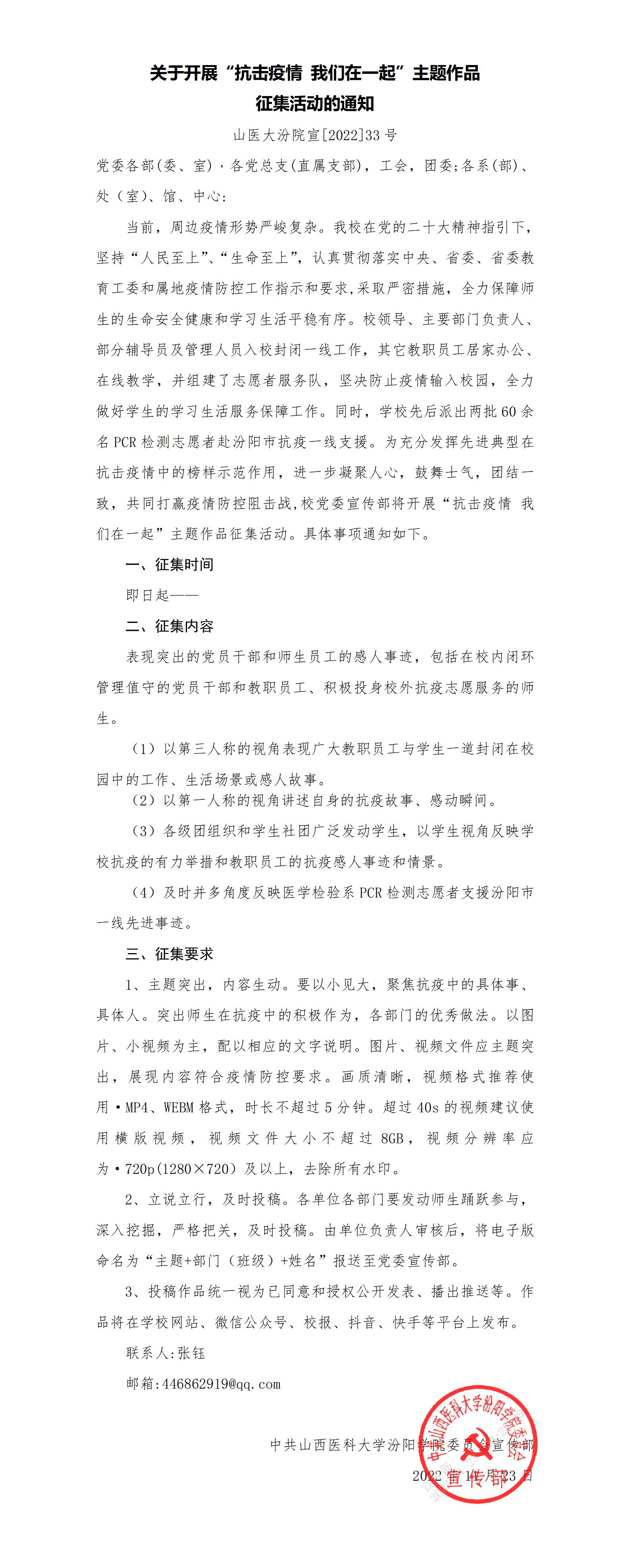 关于开展“抗击疫情 我们在一起”主题作品征集活动的通知