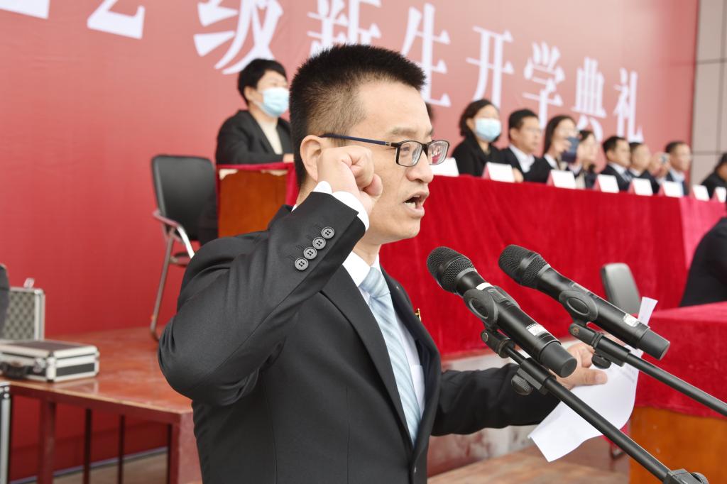 医学检验系副教授程凯老师带领同学们进行了医学生宣誓。