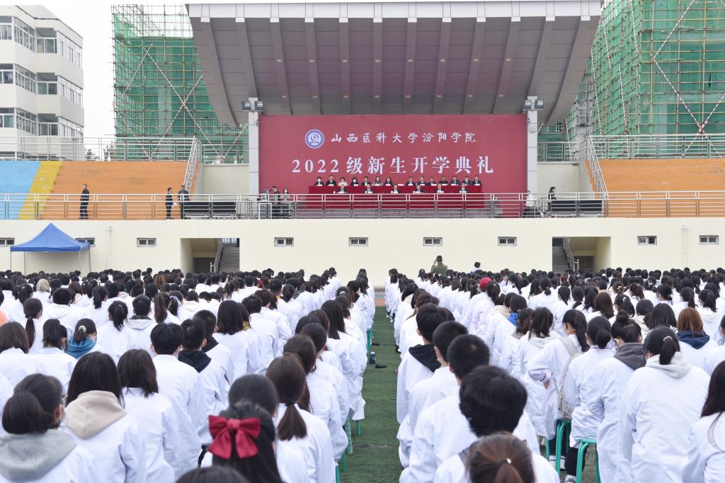 党委副书记、院长孟小平进行了致辞。孟院长首先代表学校全体师生员工,向新同学表示欢迎和祝贺,向一路指引陪伴同学们成长的父母表示诚挚的问候,向全体老师们表示衷心的感谢,向因疫情无法到校的同学们表示问候。他深情寄语新同学:一是要有爱国心,在自强不息中立志报国。希望同学们胸怀“国之大者”,心系“民生要事”,锚定正确航向,根植汾院成长成才沃土,以更宏阔的视野、更宽广的格局规划自己的发展坐标,始终坚守初心、一往无前、勇攀高峰。二是要有进取心,在持续奋斗中成长成才。希望同学们把学习作为大学的首要任务,自觉“增负”、主动“加压”,跳出“舒适区”、勇蹚“深水区”、敢闯“无人区”,让青春在不懈奋斗中绽放绚丽之花。三是要有自律心,在修身立德中校准航向。希望同学们时刻牢记“健康所系,性命相托”的医学生誓言,永葆对医学事业的敬畏,怀善良之心,行正义之道,守纯粹之地,不受纷扰诱惑,努力成长为恪守医者正道、心存无疆大爱的医务工作者,为推动“健康中国”建设作出自己的贡献。
