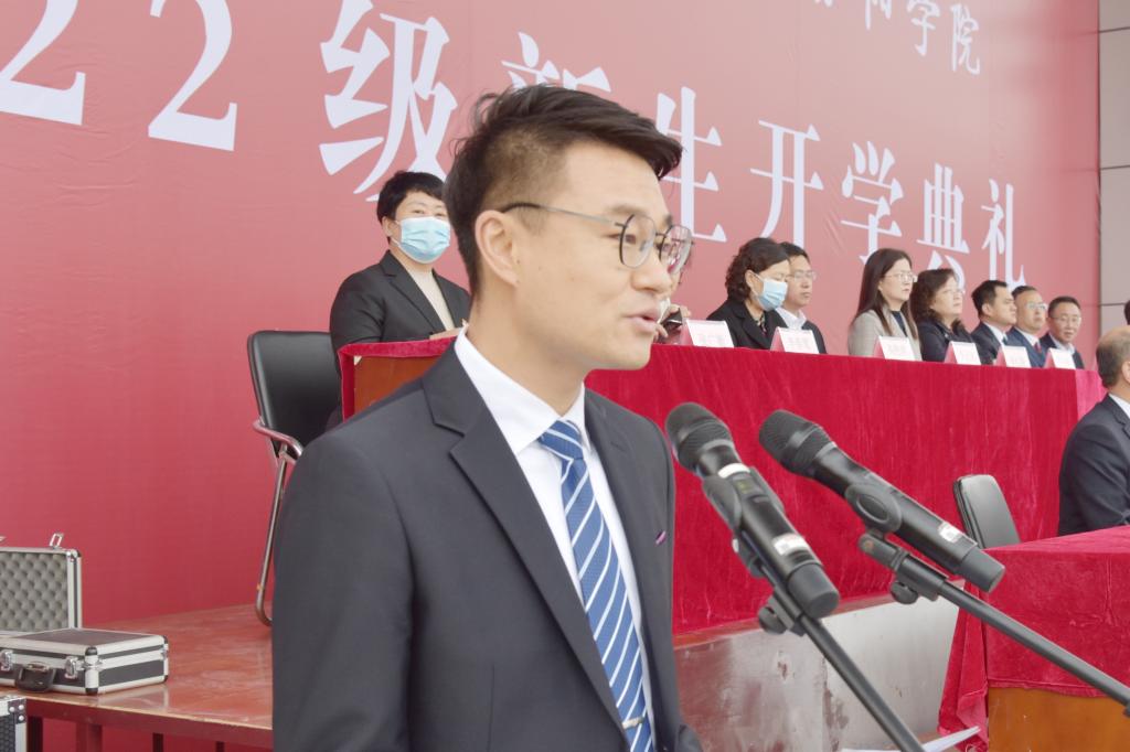 10月5日上午,SUNBET在田径操场隆重举行了2022级新生开学典礼。校党委书记闫敬来,党委副书记、院长孟小平,党委副书记王伟,党委委员、纪委书记尹锡昊,党委委员、副院长陈振文,党委委员、副院长李荣江,教务处、学生工作部(处)、团委和各教学系部党政负责同志,2022级新生班辅导员、学业导师和全体新生参加了开学典礼。党委委员、副院长陈振文主持了开学典礼。