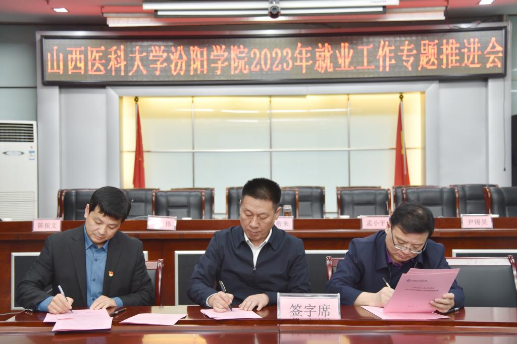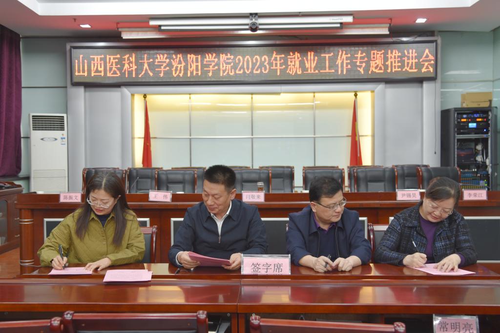 闫敬来书记、孟小平院长与学生工作处、各系(部)签订2023年就业工作责任书。