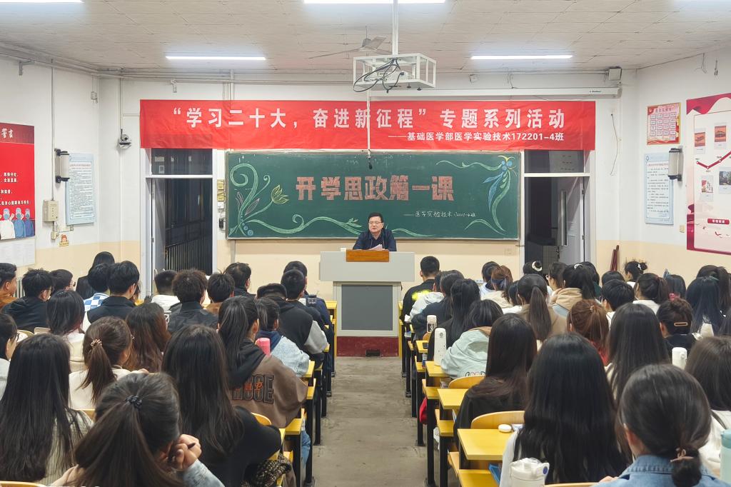 为深入学习宣传贯彻党的二十大精神,落实领导干部联系学生班级制度,3月14日晚,校党委副书记、院长孟小平以“把握当下 肩负使命 奋楫扬帆再出发”为题,为医学实验技术专业172201-4班学生讲授了春季学期“开学第一课”,辅导员宋艳萍、学业导师赵莹莹参加。
