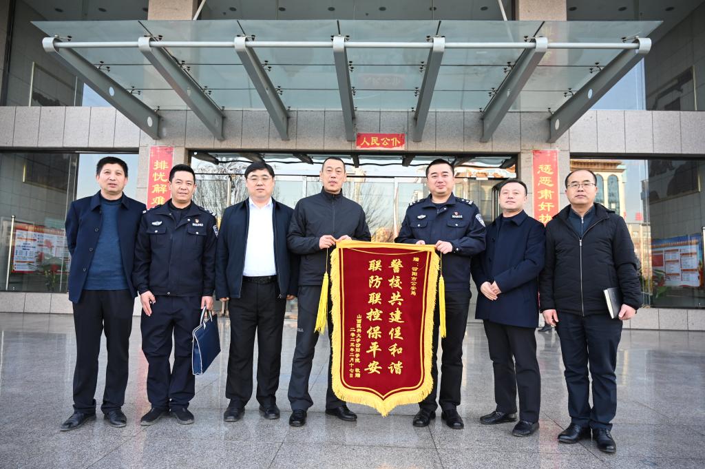 党委副书记王伟代表SUNBET为汾阳市公安局赠送了“警校共建促和谐、联防联控保平安”的锦旗。