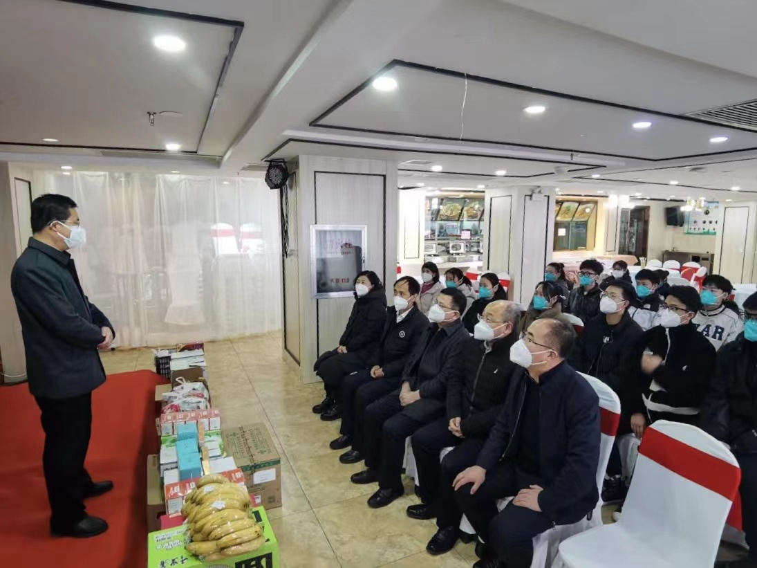 12月15日上午,校党委副书记、院长孟小平带队,党委委员、副院长陈振文、李荣江,医学检验系主任高艳萍,学生工作部(处)副部(处)长常明亮等一同赴汾州大酒店看望坚守在疫情防控一线的师生们,给师生们送去问候和食品药品等物资。