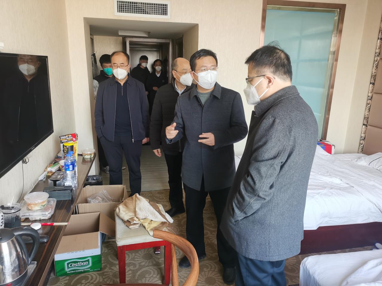 随后,领导们深入学生房间,与同学们亲切交流,嘘寒问暖,详细了解大家的健康状况和生活情况,进一步增强了同学们的幸福感和归属感。情系学子,情暖一线,领导们的亲切关怀化作了同学们乘风破浪、勇毅前行的动力和能量。同学们纷纷感谢学校领导的关心与慰问,表示一定要按照防控工作要求,充分发挥先锋模范作用,积极发扬志愿者的优良作风,为疫情防控工作贡献青春力量。