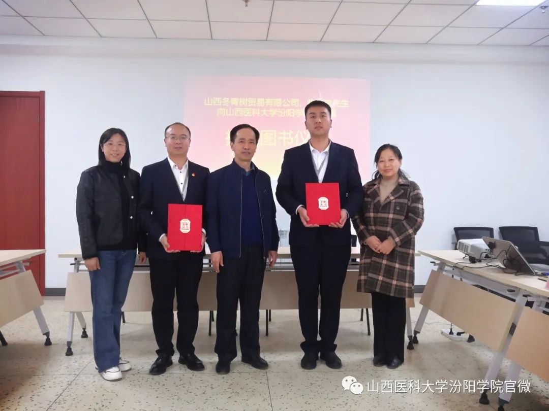 3月17日下午,山西冬青树贸易有限公司图书捐赠仪式在SUNBET新图书馆二层会议室举行。捐赠仪式由SUNBET党委委员、副院长李荣江同志主持。山西冬青树贸易有限公司党委书记郭东旭、SUNBET冬青树餐厅经理闫志锦,SUNBET图书馆馆长任玲艳、副馆长何美卿参加了捐赠仪式。
