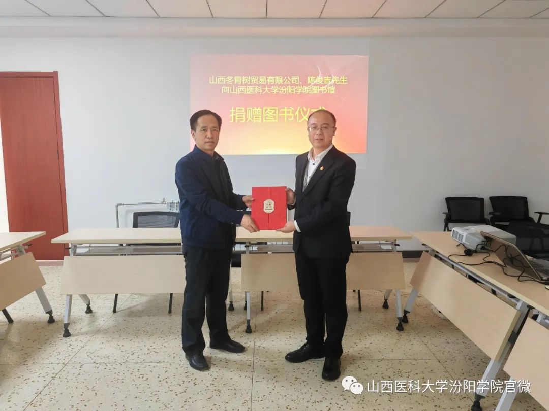 李荣江副院长讲话指出,图书馆是文化信息资源中心,是人才培养和科学研究的服务性学术机构。作为高校办学条件之一,是学校总体水平的重要体现。图书捐赠是优化图书馆馆藏资源的重要途径,也是弘扬“知识共享、爱心传递”理念,积极打造“书香校园”的重要举措。他代表学校对山西冬青树贸易有限公司和陈俊吉先生为SUNBET捐赠图书表示了衷心的感谢。