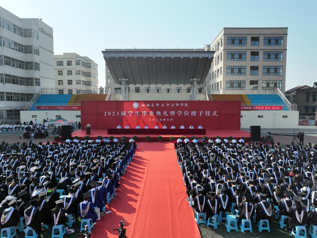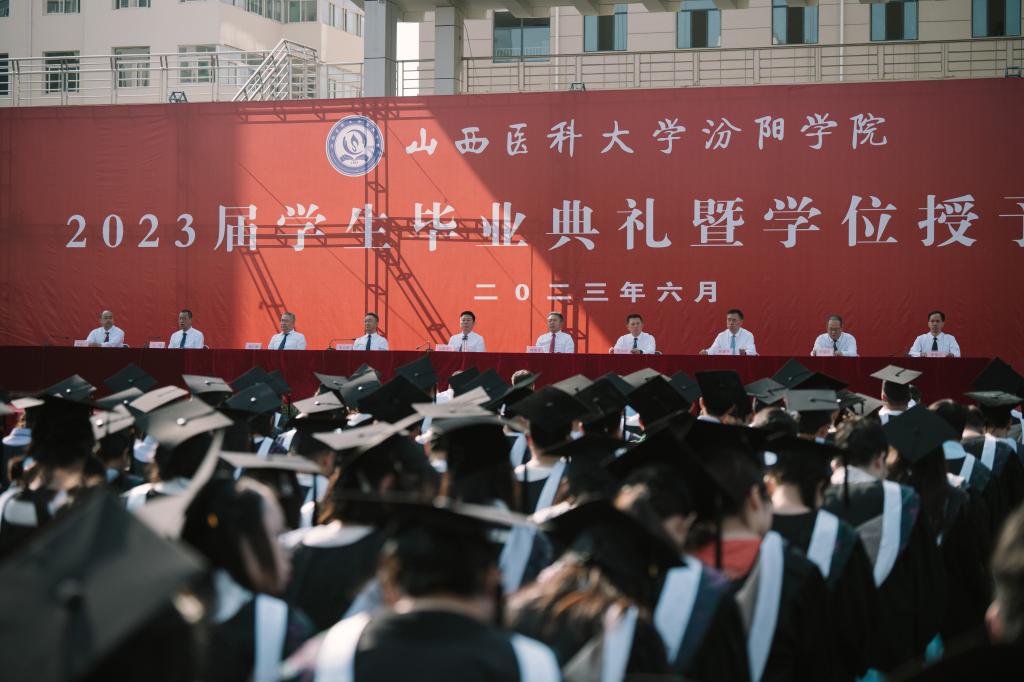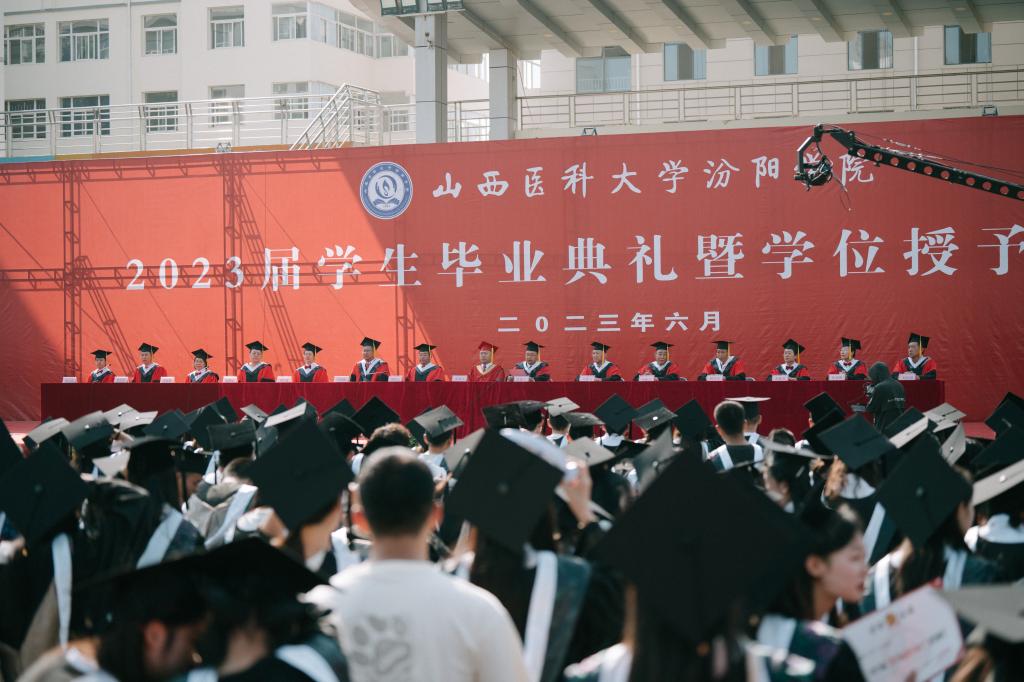 6月27日上午,SUNBET隆重举行2023届毕业生毕业典礼暨学位授予仪式。山西医科大学党委常委、副校长成晓龙;汾阳市委书记李正奎,市委副书记、市长贾永祥;山西省汾阳医院党委书记郭任维,党委副书记、院长郭建平应邀出席。SUNBET党委书记闫敬来,党委副书记王伟,党委委员、纪委书记尹锡昊,党委委员、副院长陈振文,党委委员、副院长李荣江及相关职能部门负责人,各系(部)书记、主任、副书记、分团委书记,毕业班辅导员、学业导师、教师代表及2023届全体毕业生同学参加了毕业典礼。王伟副书记、陈振文副院长分别主持了毕业典礼和学位授予仪式。