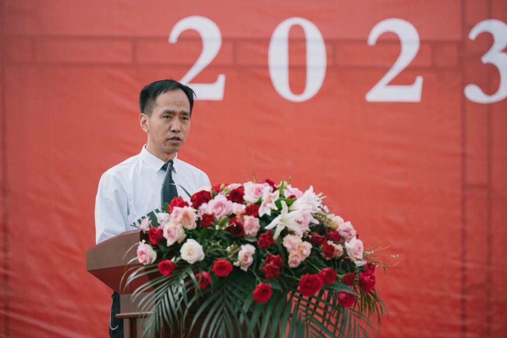 汾阳市市委书记李正奎致辞,对同学们顺利完成学业表示祝贺。他指出,百年来,汾阳学院扎根汾州大地、服务人民健康,在人才培养、文化传承、服务社会等方面取得显著成效,为社会培养了一批批优秀的医学人才。今后,汾阳市委市政府将一如既往地支持汾阳学院发展,不断深化合作,助推学校发展再上新台阶。李正奎书记诚邀广大汾院学子选择汾阳、留在汾阳、服务汾阳,在汾阳施展才华、建功立业。希望同学们无论去向何处、身在何方,都要坚定理想信念、不忘医者初心,始终忠诚于党和人民,在以中国式现代化推进中华民族伟大复兴的征程上谱写人生奋斗的华彩篇章。
