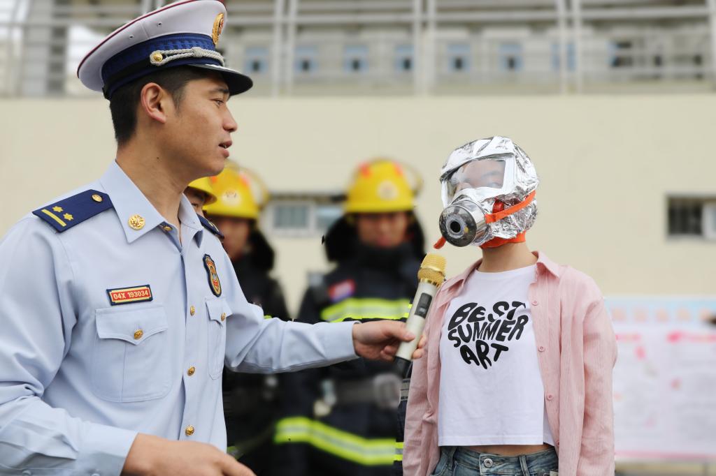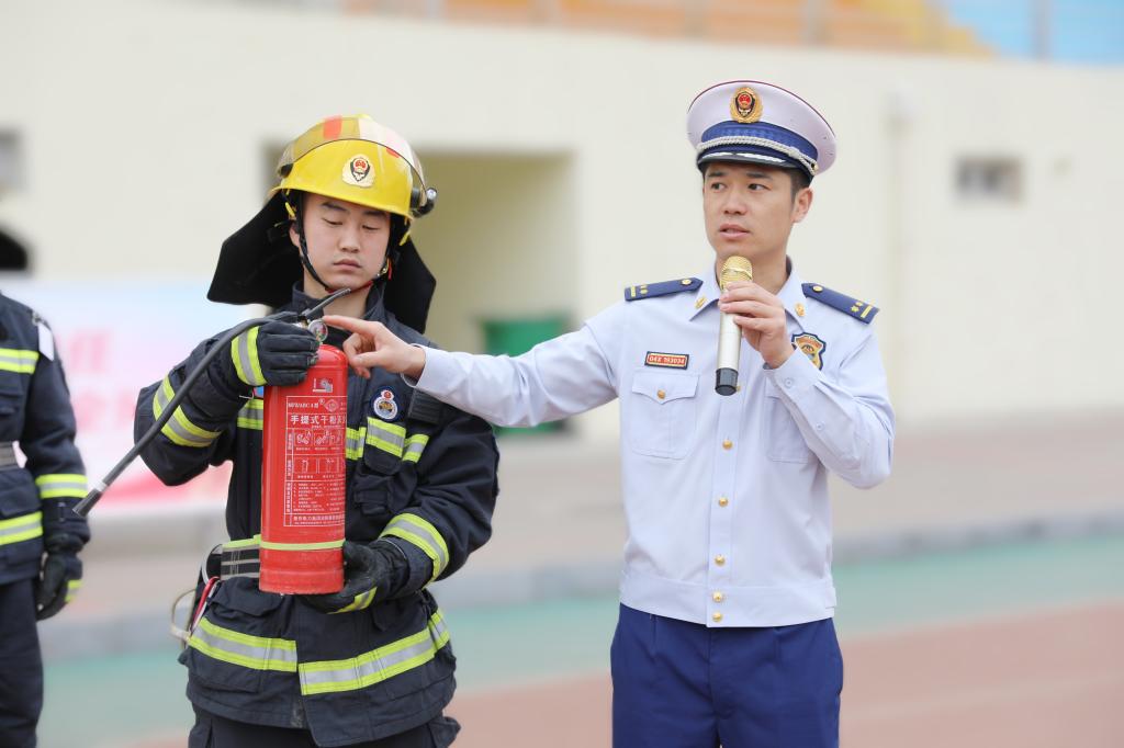 汾阳市消防大队张怀青参谋长介绍了当前消防安全的严峻形势,强调了消防安全的重要意义,希望同学们能够深刻警醒,重视消防安全。随后,张怀青参谋长具体讲解了灭火器、火灾逃生面具的操作方法并进行了现场演示。同学们进行了操作实践,了解了灭火器、火灾逃生面具的操作使用方法。