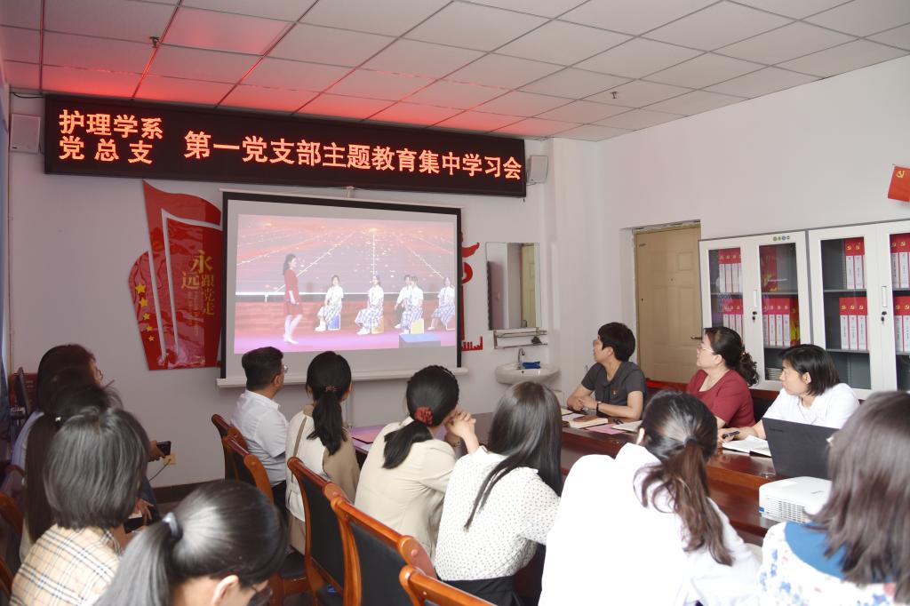 指导组还查阅了相关资料,列席旁听了首批全国党建工作样板支部、护理学系党总支第一党支部的主题教育专题学习会。支部书记张涌静主持并领学了习近平总书记关于教育的重要论述,护理研究室主任周雪、基础护理学教研室主任薛晶晶及教师杨玉静分别围绕课程思政主题,结合自身工作实际分享了做法与体会,护理学系党总支书记武小丽以普通党员身份参加并阐述了“思政课程”与“课程思政”的关系,与会人员观看了由系部师生以课程思政为主题创作的主题教育成果情景剧《追光者》。指导组对专题学习会给予了充分肯定,希望护理学系党总支第一党支部以学习贯彻习近平新时代中国特色社会主义思想主题教育为契机,深化推进全国党建工作样板支部建设,充分发挥示范辐射带动效应,在抓党建、促业务上再接再厉、不断创新。