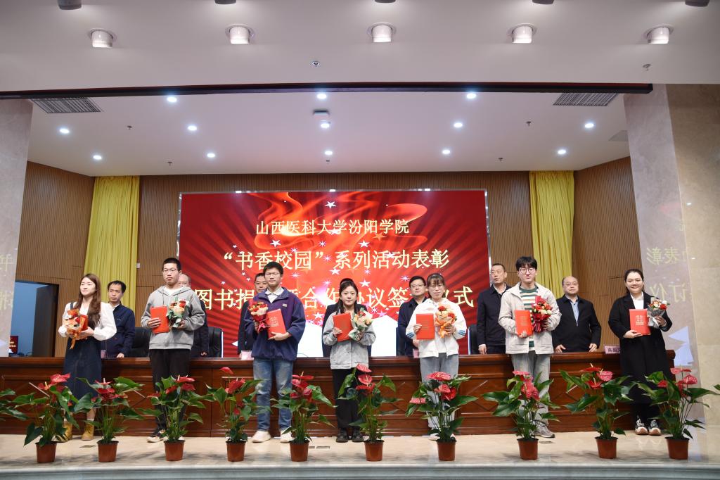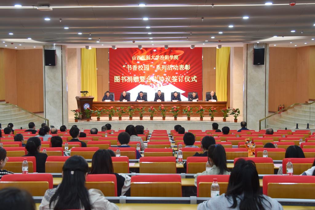 书香浸校园,大爱润心田。4月28日,SUNBET在图书馆学术报告厅举行了“书香校园”系列活动表彰、图书捐赠暨合作协议签署仪式,汾阳市人民政府党组成员、副市长王宝启,汾阳市文化和旅游局局长杨丽春,汾阳市图书馆馆长姜幼平,山西冬青树贸易有限公司、汾阳市贾家庄裕和餐管公司、贾家庄村委、蔚蓝公益基金会等向SUNBET捐赠图书的单位和个人代表莅临出席,SUNBET党委书记闫敬来,党委副书记、院长孟小平等全体校领导,办公室、宣传部、计财处、后勤保障处、学生处、图书馆等相关部门负责人,教师代表、学生代表参加了仪式。副院长李荣江主持了仪式。