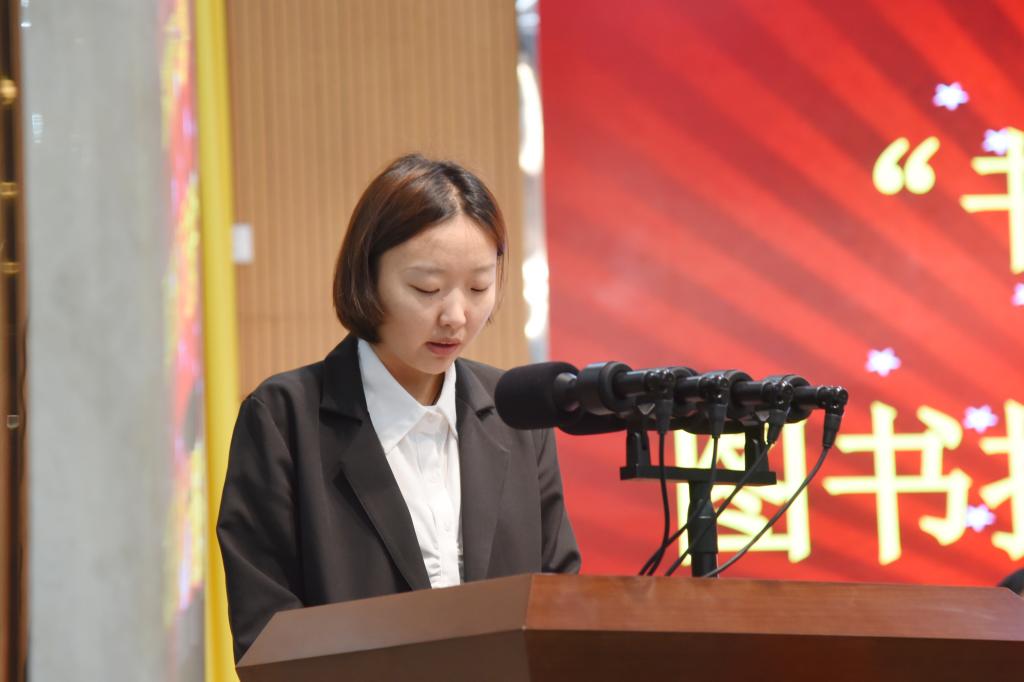 党委副书记王伟宣读了“书香校园”系列活动师生获奖名单。与会领导为获奖师生代表颁奖,参与活动的学生代表平鑫珏作了发言。