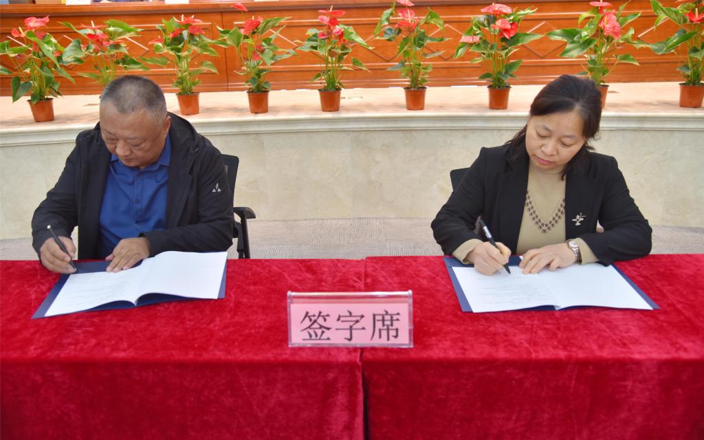 校图书馆馆长任玲艳代表学校与汾阳市图书馆馆长姜幼平签署了战略合作协议。