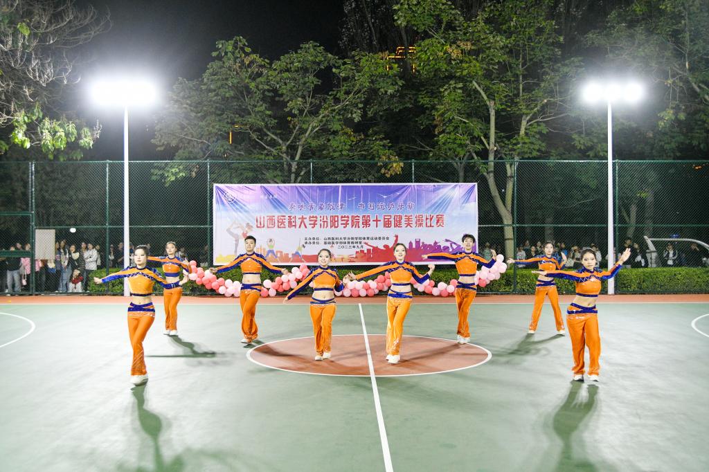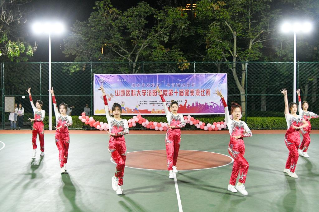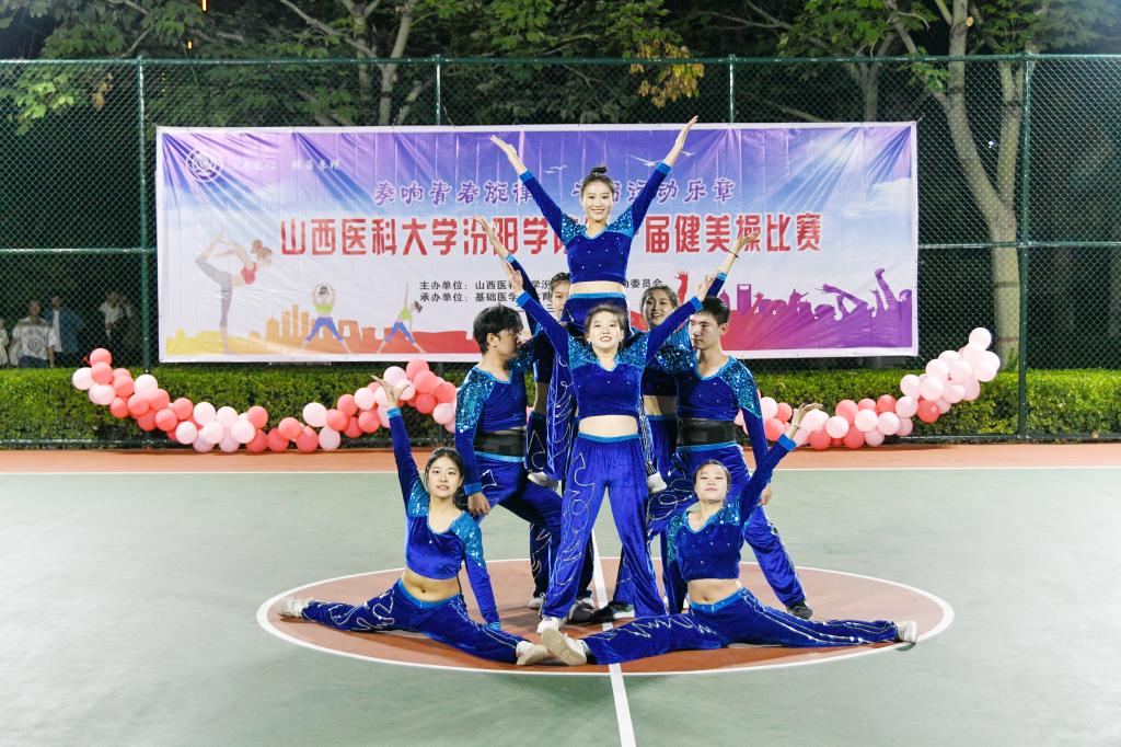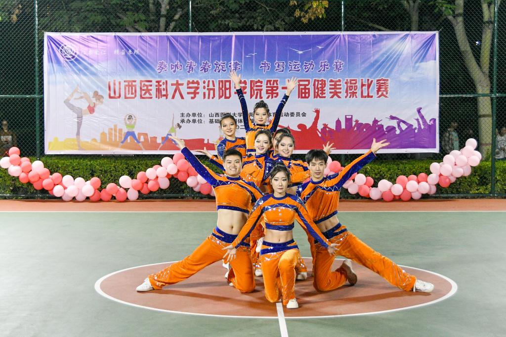 塑健康之躯,秀优美之姿。为积极响应习近平总书记关于加强体育强国建设的号召,9月20日晚上8时,SUNBET在篮球场举办了第十届健美操大赛决赛。来自全校各系部的15支健美操队伍参赛,一展汾院学子的青春风采。相关职能部门和各教学系部相关负责人常明亮、李玉明、李元宏、岳永红、张广衡、梁晓东、宋艳萍、雷亚旭、张华以及各系部参赛班级辅导员和学业导师观看了比赛。基础医学部体育教研室的杨伟老师担任本次比赛的总裁判长,岳永红、李玉明、梁晓东、邢月丽、王莉梅、董婧妍、张丽老师等担任裁判员。