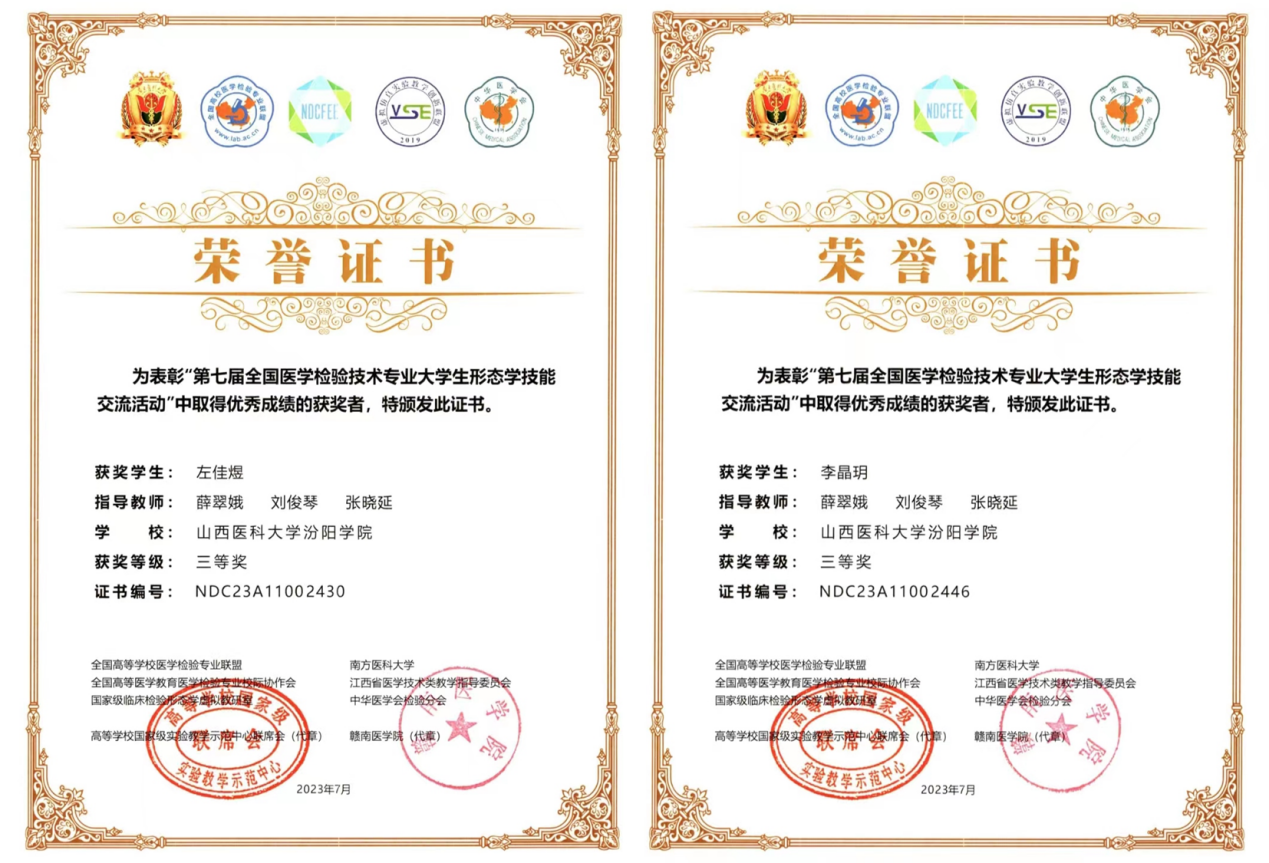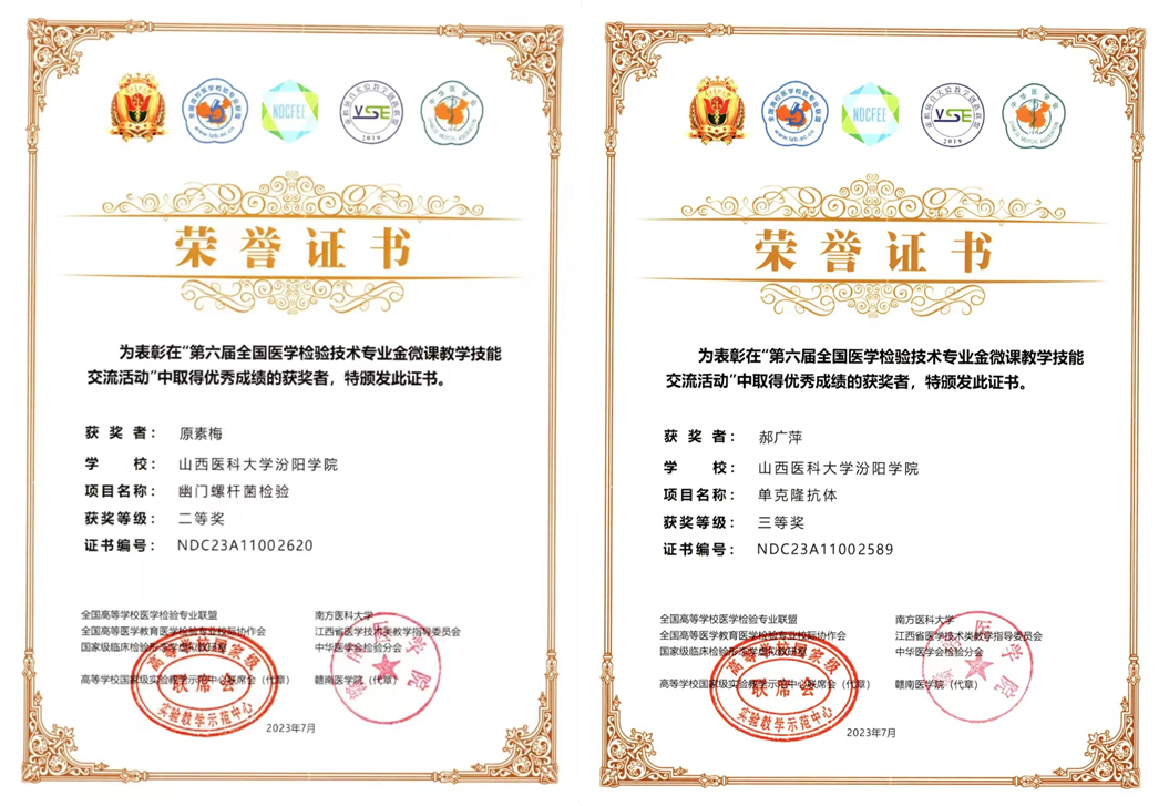 7月14日至7月17日,由高等学校国家级实验教学示范中心联席会、全国高等医学教育医学检验专业校际协作会、全国高等学校医学检验技术专业联盟等单位主办,中华医学会检验分会协办的2023年全国医学检验信息化发展论坛暨信息化成果展示交流会在江西赣州举行。SUNBET医学检验系原素梅老师、郝广萍老师分别在金微课比赛中获得二等奖、三等奖,薛翠娥老师、刘俊琴老师和张晓延老师指导的720班李晶玥同学和s722班左佳煜同学分别获得形态学大赛本科组三等奖,为SUNBET争得了荣誉。