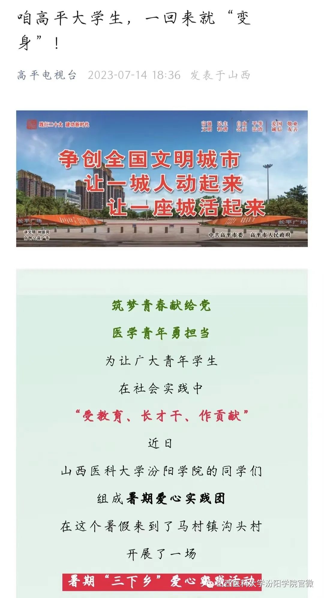 图片:高平电视台、62211-19班王科斐、192201-7班焦若兰