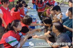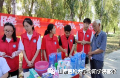 前进的脚步永不停歇,队员们身着“红马甲”,摆起义诊台,给村民们进行血压、血糖的测量,详细询问他们的生活饮食习惯以及既往病史、用药情况等。李淑勤老师则根据检查结果有针对性地进行健康指导,从而消除村民的疾病隐患、强化健康意识、保障健康安全。此外,团队还为现场村民们免费发放水杯、洗洁精、洗手液、药物等,为村民送去温暖。