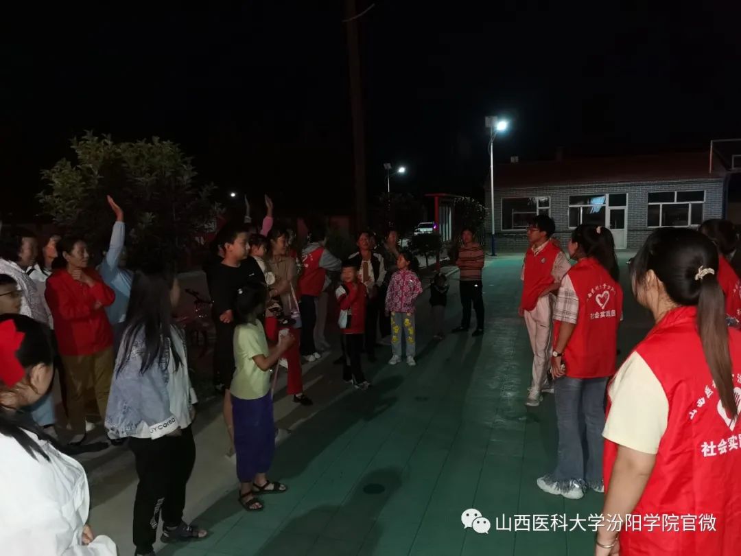 7月15日晚,宣讲组的同学开展了一系列专题宣讲活动。同学们用方言向老乡们认真宣传健康生活、用电用火安全、防诈骗防拐卖、法律援助等知识,倡导节能环保、低碳出行的文明生活理念。宣讲活动后,实践团在村委会举办了文艺汇演。同学们给村民们带来了朗诵、跳舞、手势舞等精彩节目。在节目中穿插了有奖问答环节,村民们踊跃回答,将现场气氛推向高潮。演出在全体同学合唱的《歌唱祖国》声中圆满落下帷幕。