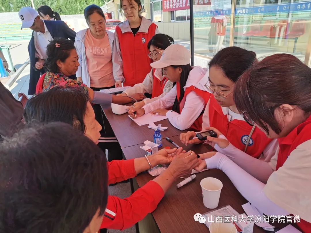 7月15日上午,师生们为东街村村民开展了义务测量血压、测量血糖的健康检测活动。早上6时,同学们就到达村委会布置场地并开展宣传,吸引了附近众多的村民。同学们认真检测并细心地将检测结果记在纸条上交给村民,叮嘱有高血压、高血糖的村民要注意健康饮食和适量运动。之后,同学们跟随老师分别探望了老党员闫贞、常连林和冀丕强,听他们讲述自己的艰苦奋斗故事,并向老党员们捐助物品表达心意。