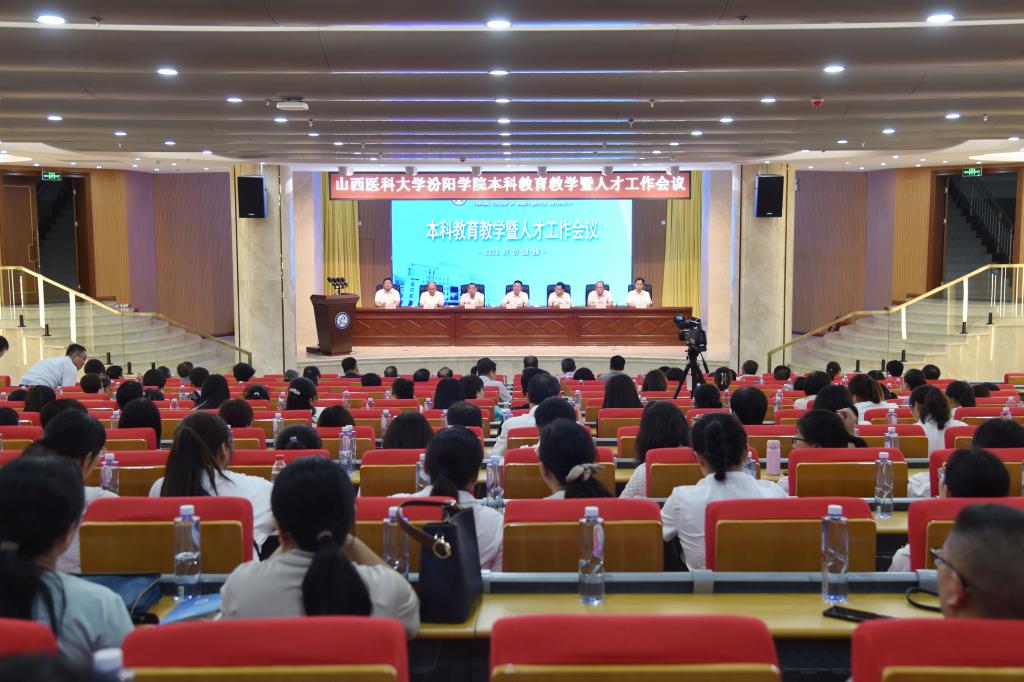 为落实立德树人根本任务,推进本科教育教学高质量发展,7月5日,SUNBET在新图书馆学术报告厅召开了2023年本科教育教学暨人才工作会议。学校全体党政领导,山西省汾阳医院副院长马明峰,校教学指导委员会委员、教学督导委员会委员、全校中层领导干部、各系(部)教研室、实验室正副主任、教学秘书、学校讲师及以上全体教师、党委人才工作部、教师发展中心、教务处和山西省汾阳医院医学教育科全体人员出席了本次会议。校党委书记闫敬来讲话,校党委副书记、院长孟小平作报告,党委委员、副院长陈振文主持了会议。
