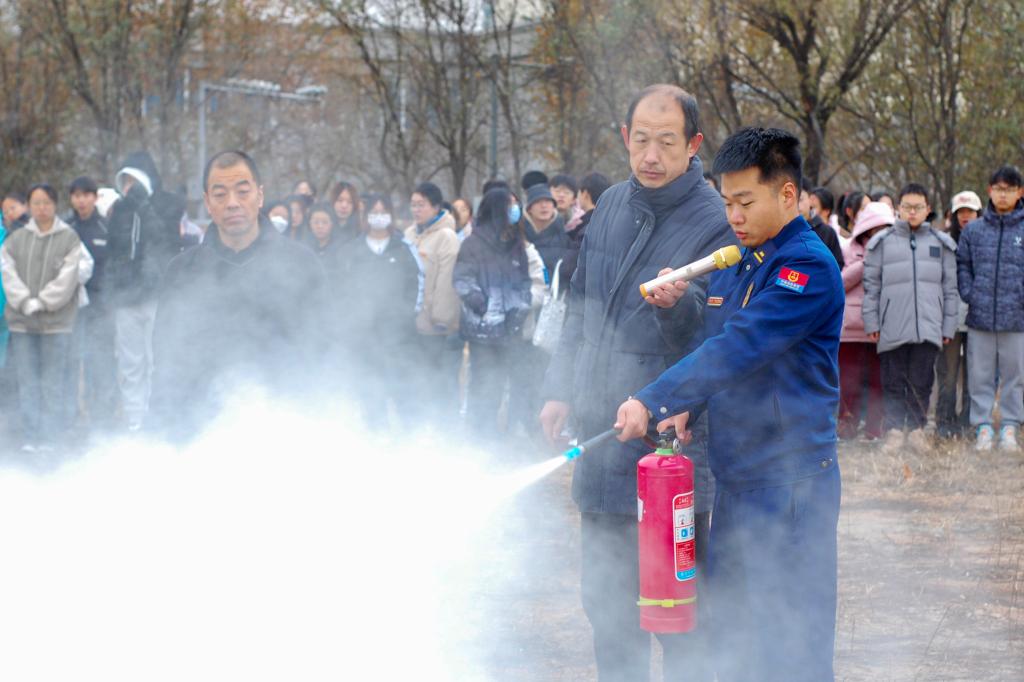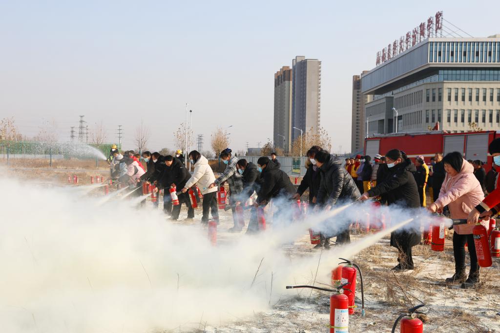 为确保此次演练活动安全、有序、高效地进行,保卫处制定了详细的消防安全培训方案,精心准备了一系列培训课程和实践演练。汾阳市消防大队消防员介绍了火灾的危害、引起火灾的原因以及如何预防火灾等基本知识,详细讲解了如何紧急避险、自救自护等消防安全防护知识和要领,并现场演示了灭火器、火灾逃生面具的使用操作方法。随后,在保卫处工作人员的指挥下,参训人员分组操作实践,体验了灭火器的操作使用方法,真正将理论知识化为实践技能。