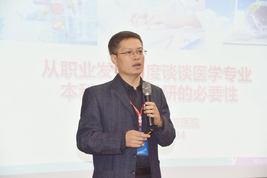 刘国栋校友以幽默诙谐的语言分享了自己考入SUNBET、考研深造、攻读博士学位、参加工作和创业成功的个人成长经历,同时为现场学生带来题为《粪便幽门螺杆菌耐药检测研究》的课题报告。他认为,作为医疗工作者,应当以人民健康为中心,以实际行动响应国家“大健康、大卫生”的号召,为扎实推进健康中国行动、全面提升人民群众的健康水平贡献自己的力量。