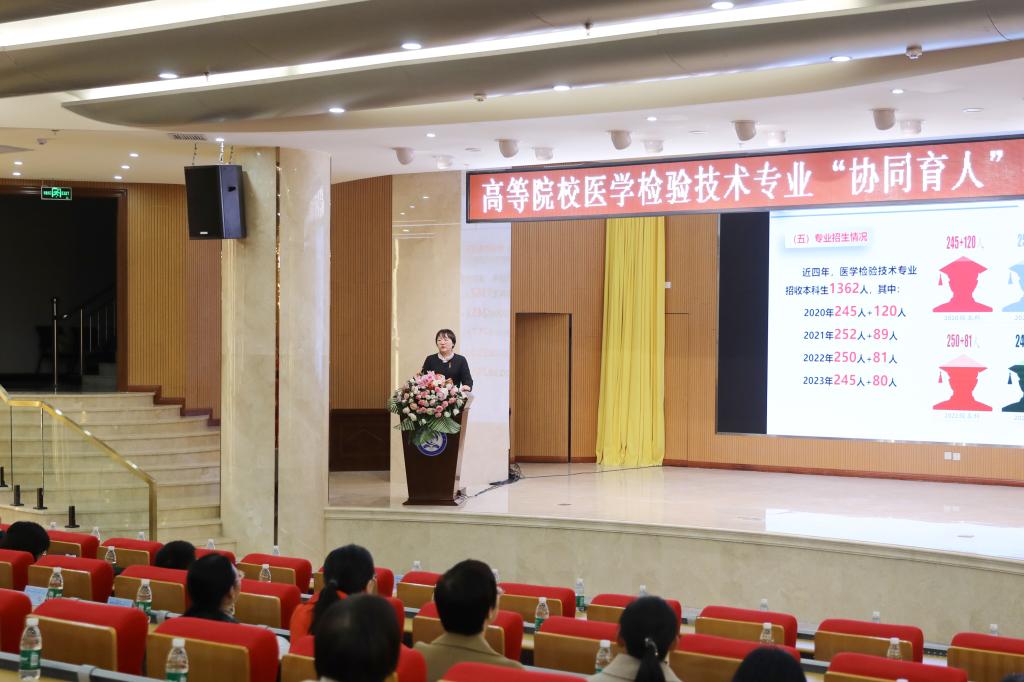 中国医科大学检验系副主任郭晓临教授在讲话中肯定了汾阳学院医学检验系在教指委组织的各项活动中的优异表现,希望通过此次会议,建立起与医学检验各界各单位的更多联系,在探索“产、教、研、医、用”创新协同育人路径,推动专业链、产业链、创新链、人才链深度融合,促进医学检验专业新发展,提高应用创新型检验人才的综合实力等方面有重要的意义。