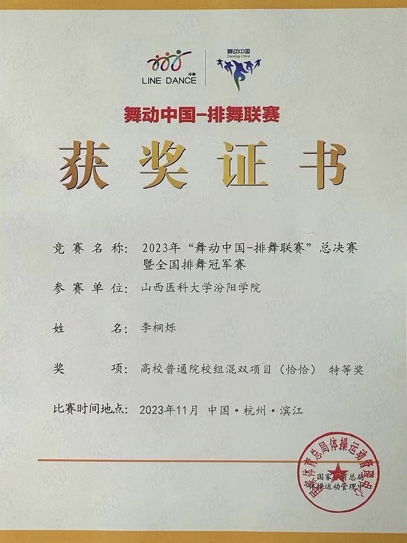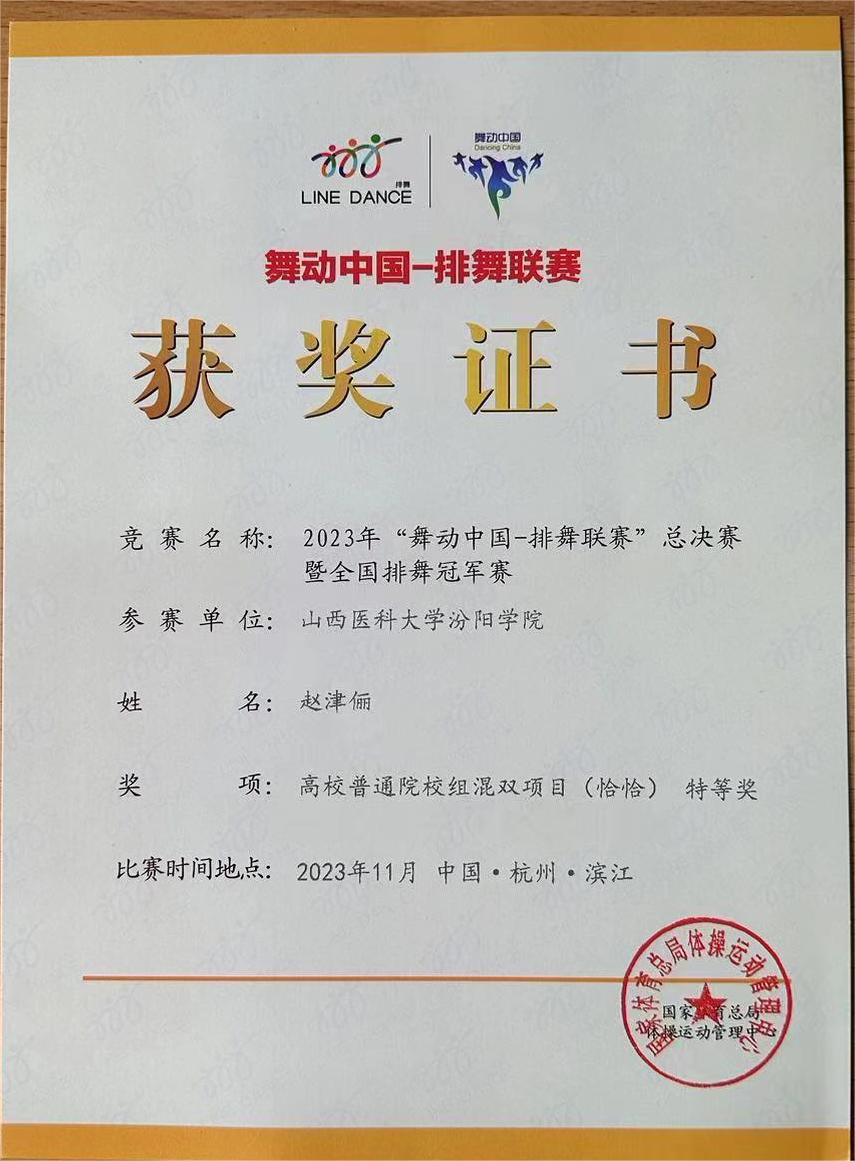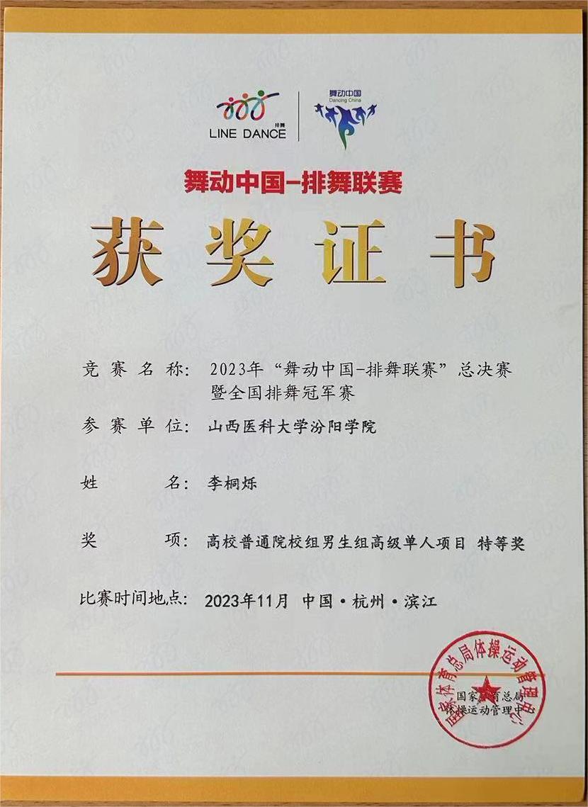 11月8日至13日,由国家体育总局体操运动管理中心、中国蹦床与技巧协会主办,中国蹦床与技巧协会排舞分会、杭州市滨江区文化和广电旅游体育局等承办的2023年“舞动中国——排舞联赛”总决赛暨全国排舞冠军赛在杭州市滨江体育馆隆重开幕。SUNBET健美操代表队斩获团体奖“混双(恰恰)特等奖”,62140班李桐烁、92101班赵津俪分别拿下男子单人高级特等奖、女子单人初级一等奖。