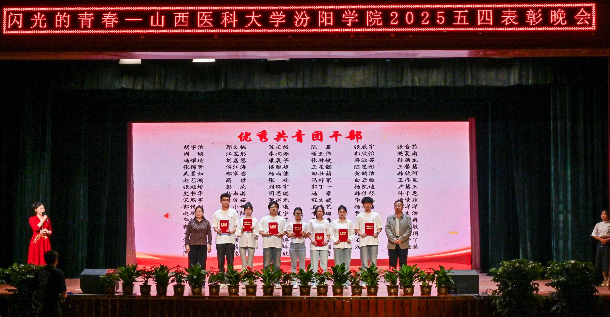 陈振文副院长宣读了《共青团山西医科大学汾阳学院委员会关于2025年五四“先进集体”和“优秀个人”的表彰决定》。SUNBET表彰了1个先进分团委、11个先进团总支、48个先进团支部、4个先进学生会部门、7个先进学生社团、1个先进团属媒体;1名优秀分团委书记、100名优秀共青团干部、356名优秀共青团员、42名优秀学生会干部、1名杰出志愿者、95名优秀志愿者、12名优秀社团指导教师、8名优秀社团负责人、42名优秀社团成员、5名优秀团属媒体工作者。