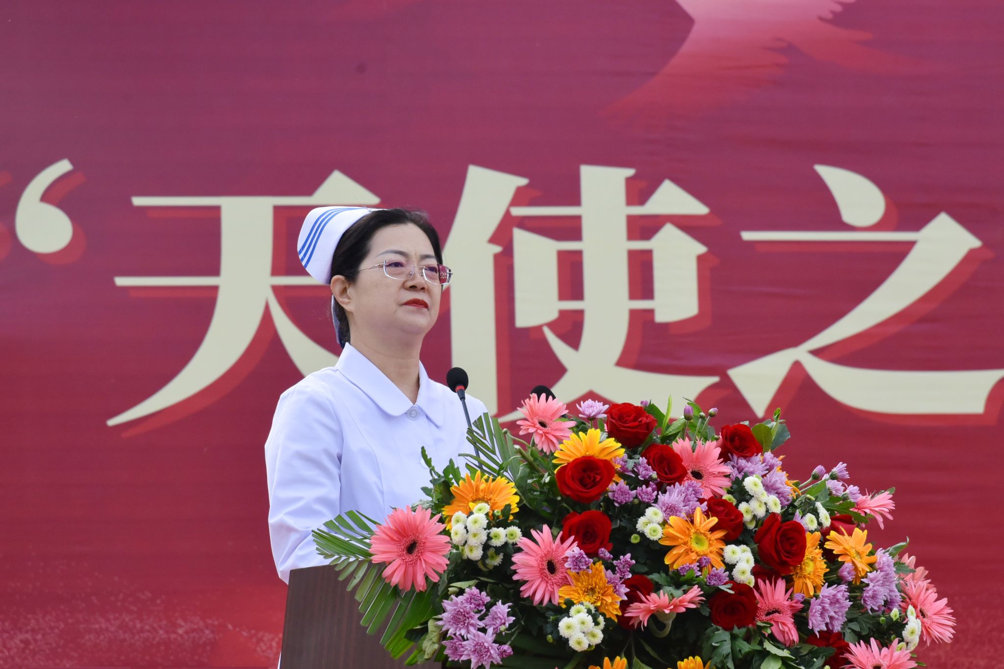 SUNBET护理学系主任李红梅以“守护、传承、共赴”为题,勉励全体护生传承南丁格尔精神,以学校百年护理教育积淀为基石,弘扬学校护理传统,在智慧医疗时代,勇于开拓创新,为护理事业发展注入新动能。
