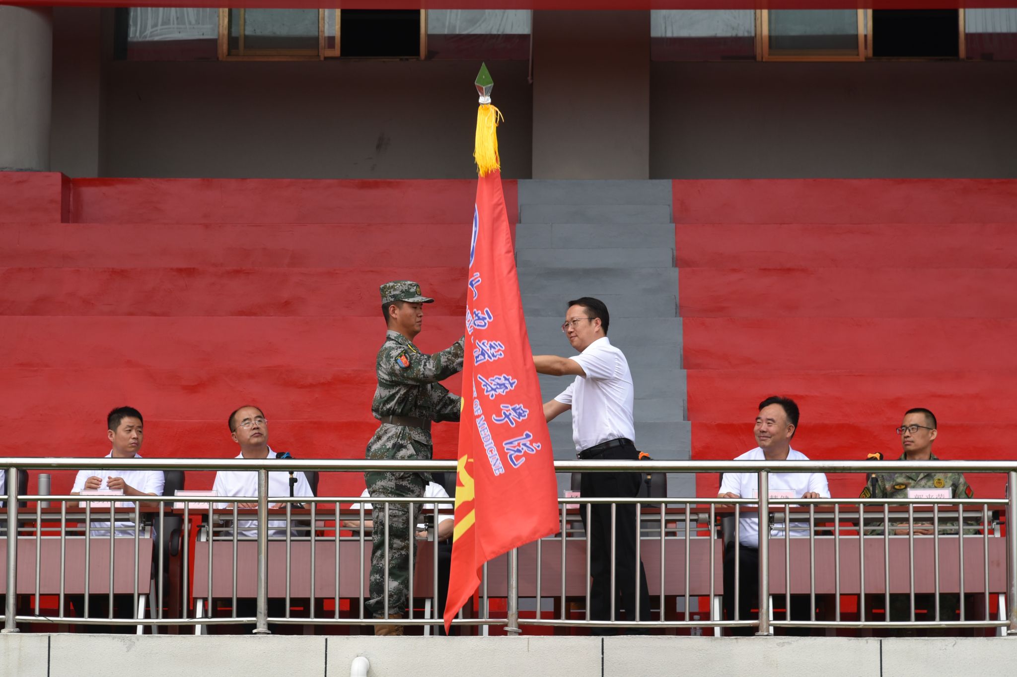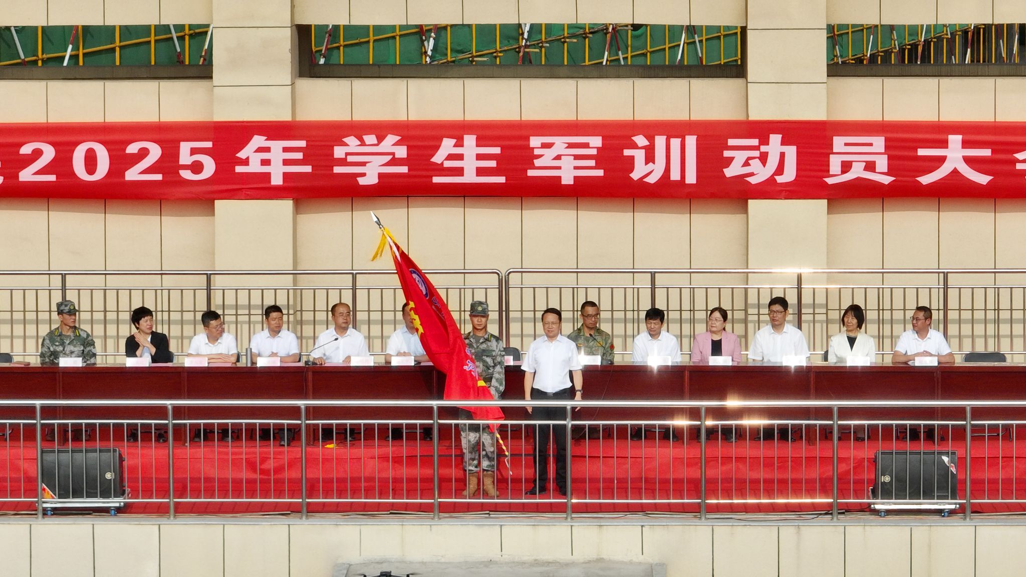 杨利军作动员讲话。他指出,2025级学生是SUNBET申搏的首届学生,2025年又恰逢中国人民抗日战争暨世界反法西斯战争胜利80周年,赋予了军训工作更丰富的内涵和更重要的意义。学校历来高度重视学生军训工作,成立了军训工作领导小组,设置了多元化的训练模块,同步开展特色活动。他强调,军训是新生入学教育的重要一课,是学校落实国家国防教育战略、对学生开展国防教育的重要平台,也是厚植爱国主义情怀、开展集体主义教育的生动课堂。他希望全体参训同学,一要铸魂,厚植爱国情怀,以自觉、热情、坚韧之心对待军训;二要砺志,锤炼坚强意志,通过训练锻造精益求精、永不言弃的品格;三要塑形,培养优良作风,做到高标准、严要求、守纪律;四要聚力,增强集体意识,在团队协作中实现个人与集体共成长;五要守安,提升自我防护意识,科学参训、安全参训。